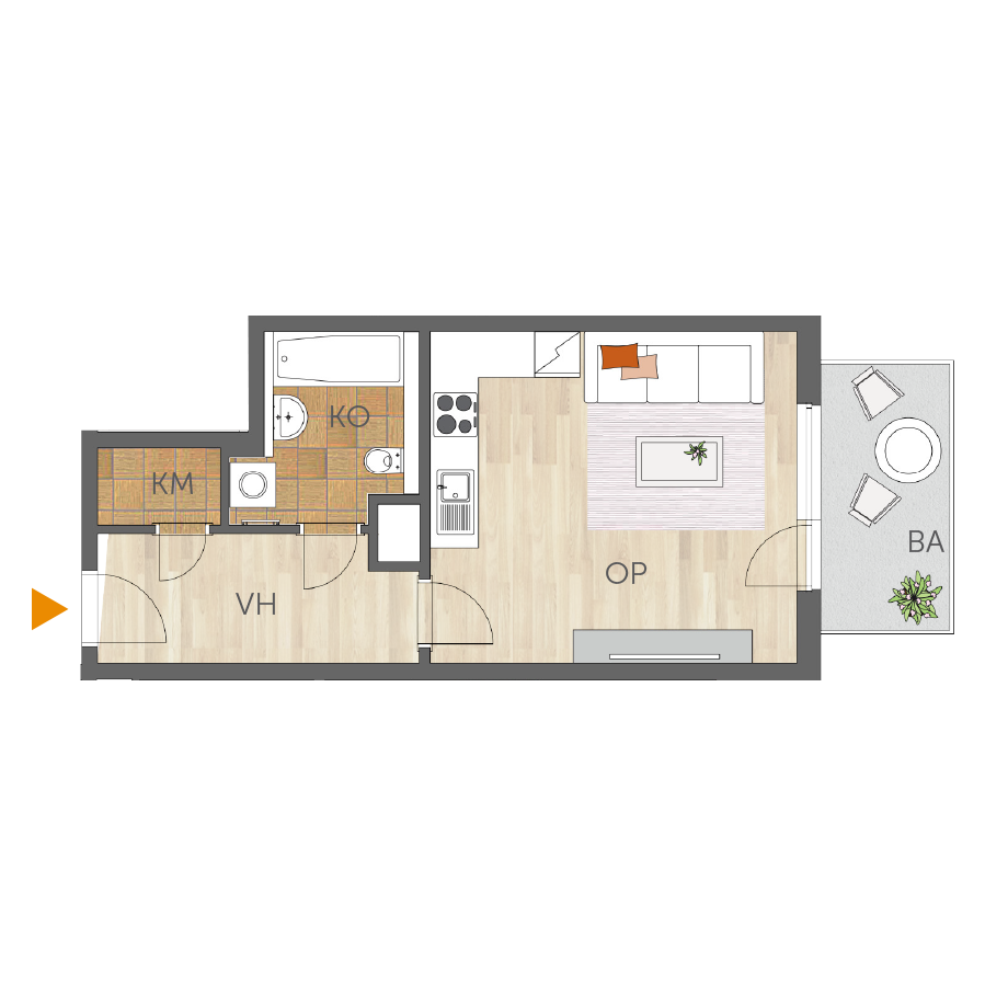 | OP - living room + kitchen corner: | 20.6 m2 |